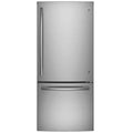 Réfrigérateur GE 30" à une porte, acier inoxydable, 21 pi³, congélateur inférieur, tiroirs coulissants, LED intérieure, machine à glaçons prête, portes réversibles.